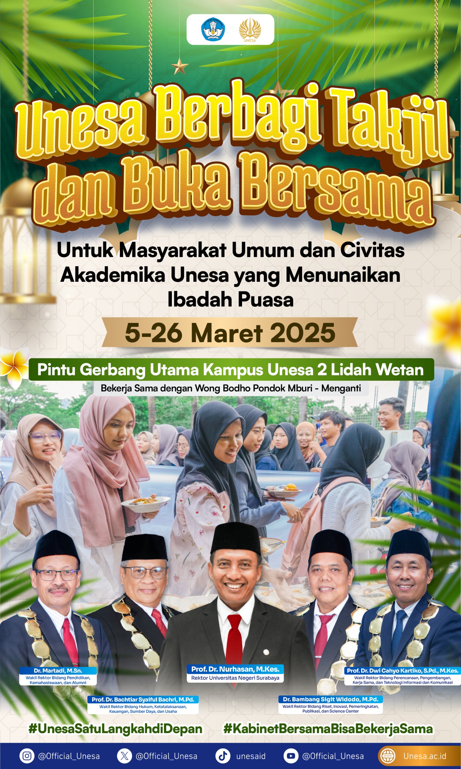 Rektor Universitas Negeri Surabaya, Prof. Dr. Nurhasan, M.Kes., menyampaikan bahwa kegiatan ini merupakan wujud nyata dari semangat kebersamaan dan kepedulian sosial Unesa. “Kami ingin menciptakan suasana kampus yang harmonis dan penuh kebersamaan, di mana seluruh elemen kampus dapat merasakan kebahagiaan berbagi di bulan Ramadan,” ujarnya.